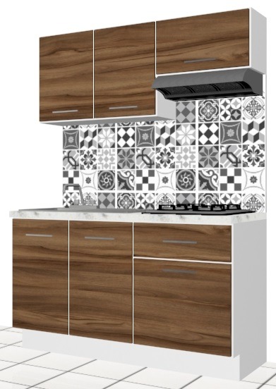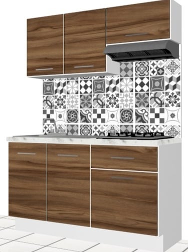 Cocina Integral, interior de los muebles en laminado blanco, con puertas en laminado de color, cubierta laminado básica 1.60mts Largo No incluye línea blanca, ni plomería